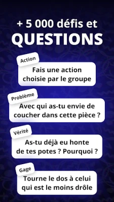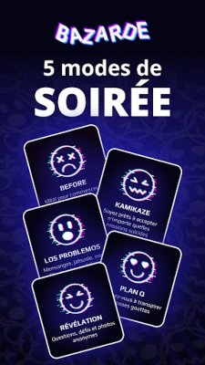 Explorez une galaxie de thématiques variées grâce aux packs exclusifs de **Bazarde**. Le pack "BEFORE" est l'amorce parfaite pour lancer les festivités et briser la glace en douceur. Pour les âmes intrépides, "KAMIKAZE" propose des missions audacieuses qui testeront vos limites. "LOS PROBLEMOS" vous plongera dans des situations cocasses et des débats animés, tandis que "PLAN Q" fera monter la tension avec des questions et défis pimentés. Enfin, "RÉVÉLATIONS" vous convie à des confidences et des clichés anonymes, explorant les facettes cachées de vos amitiés. Chaque pack est une porte ouverte vers une nouvelle dimension du divertissement.